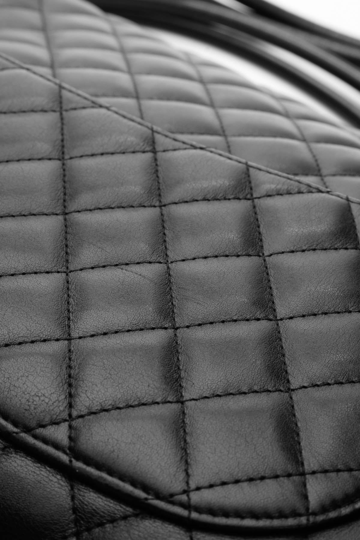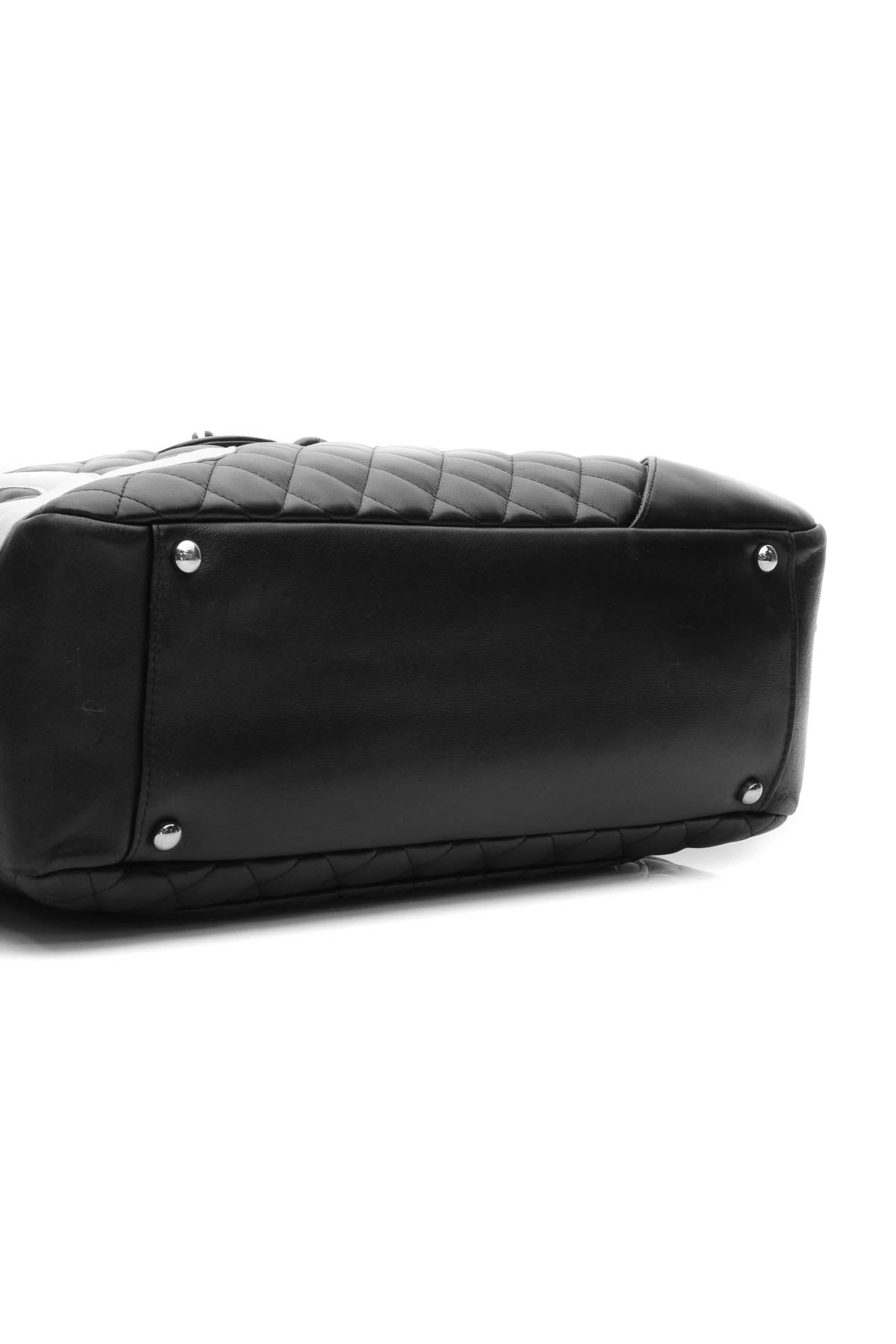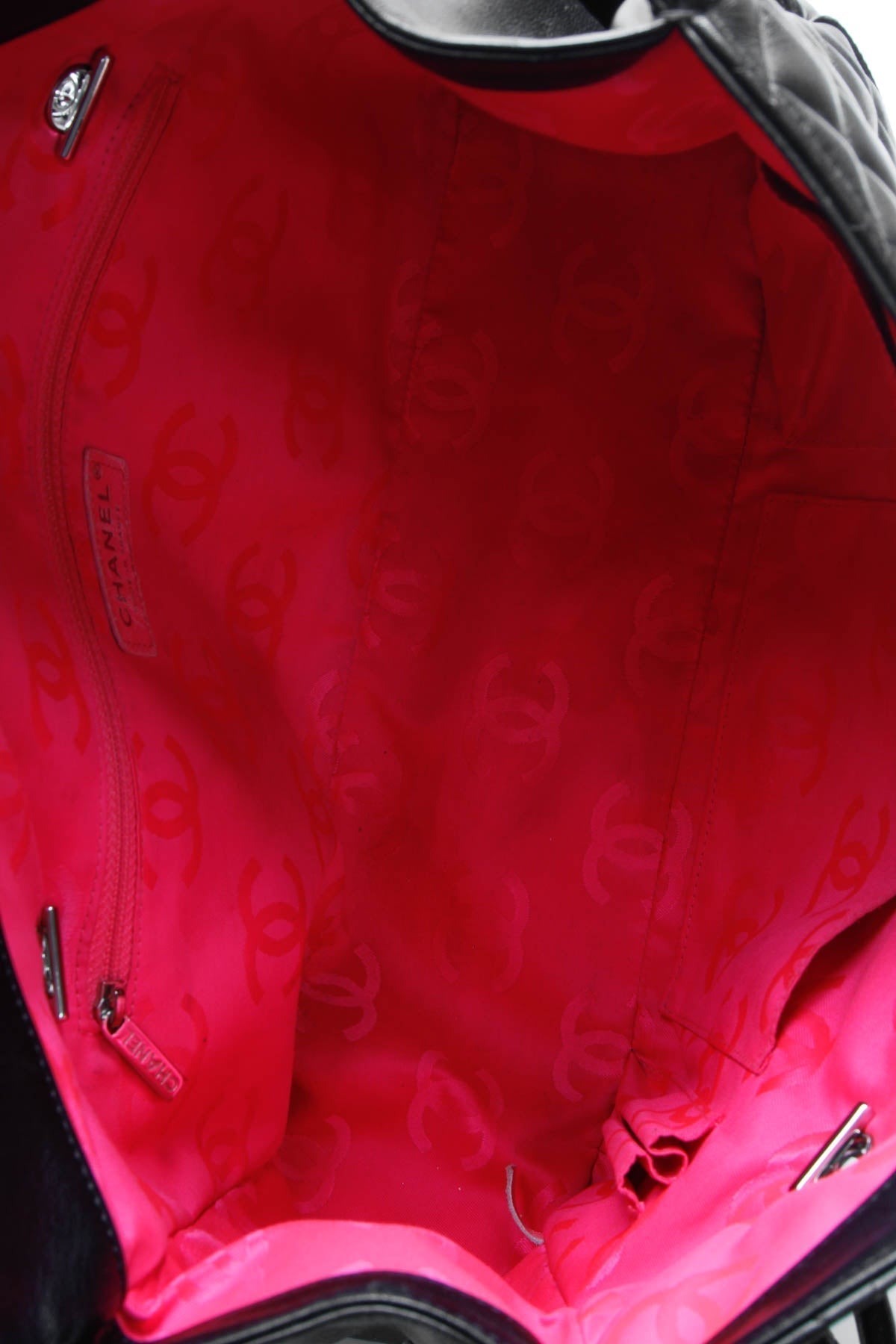 This authentic Chanel Cambon flap tote is the ideal everyday bag for the well-dressed fashionista. In this ageless beauty, versatile black calfskin, white details, and stunning silver-tone hardware lend classic Chanel elegance. Inside, a vivid pink-hued interior designed with the essentials in mind presents stylish storage for both personal and professional use.