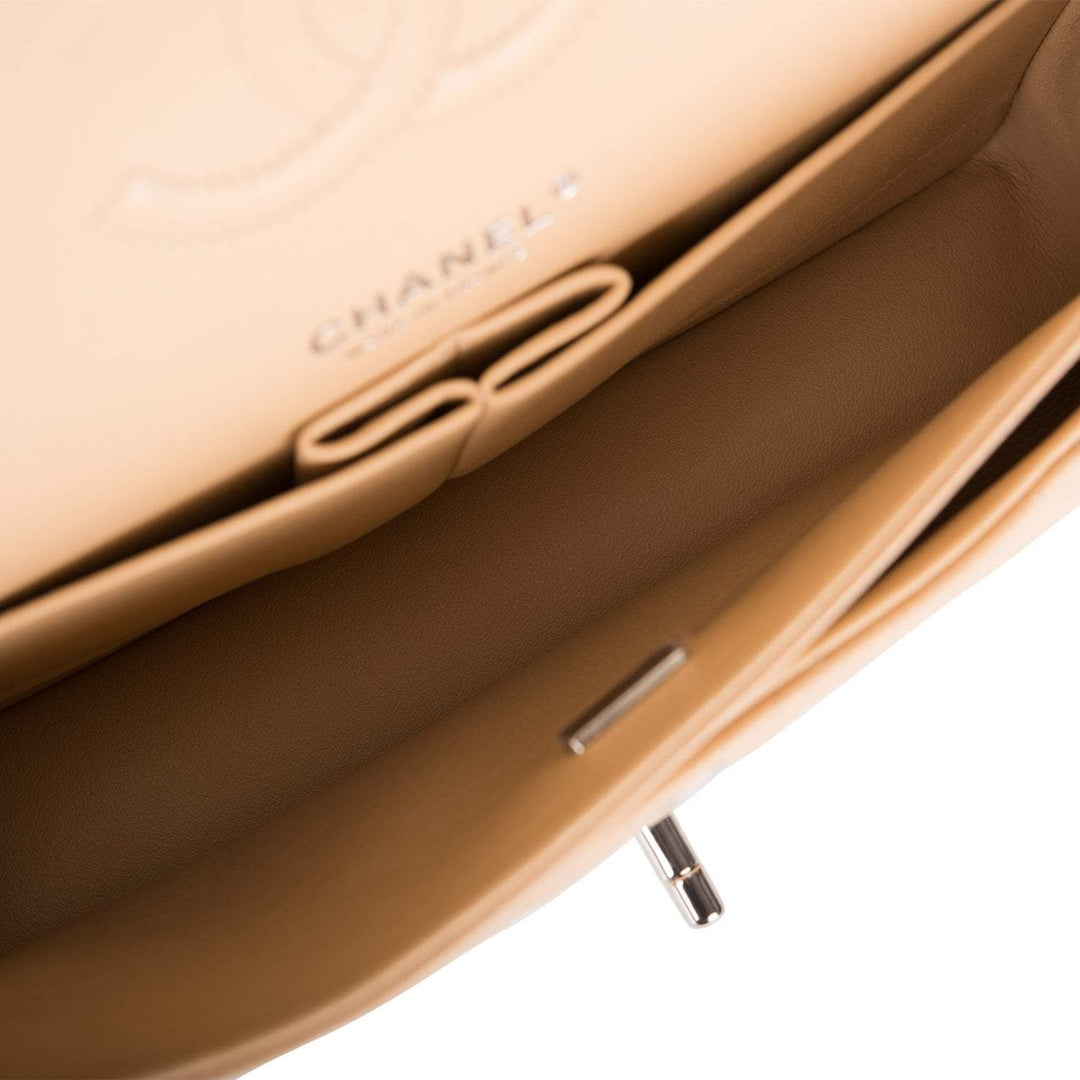 Chanel Beige Quilted Caviar Medium Classic Double Flap Bag Silver Hardware