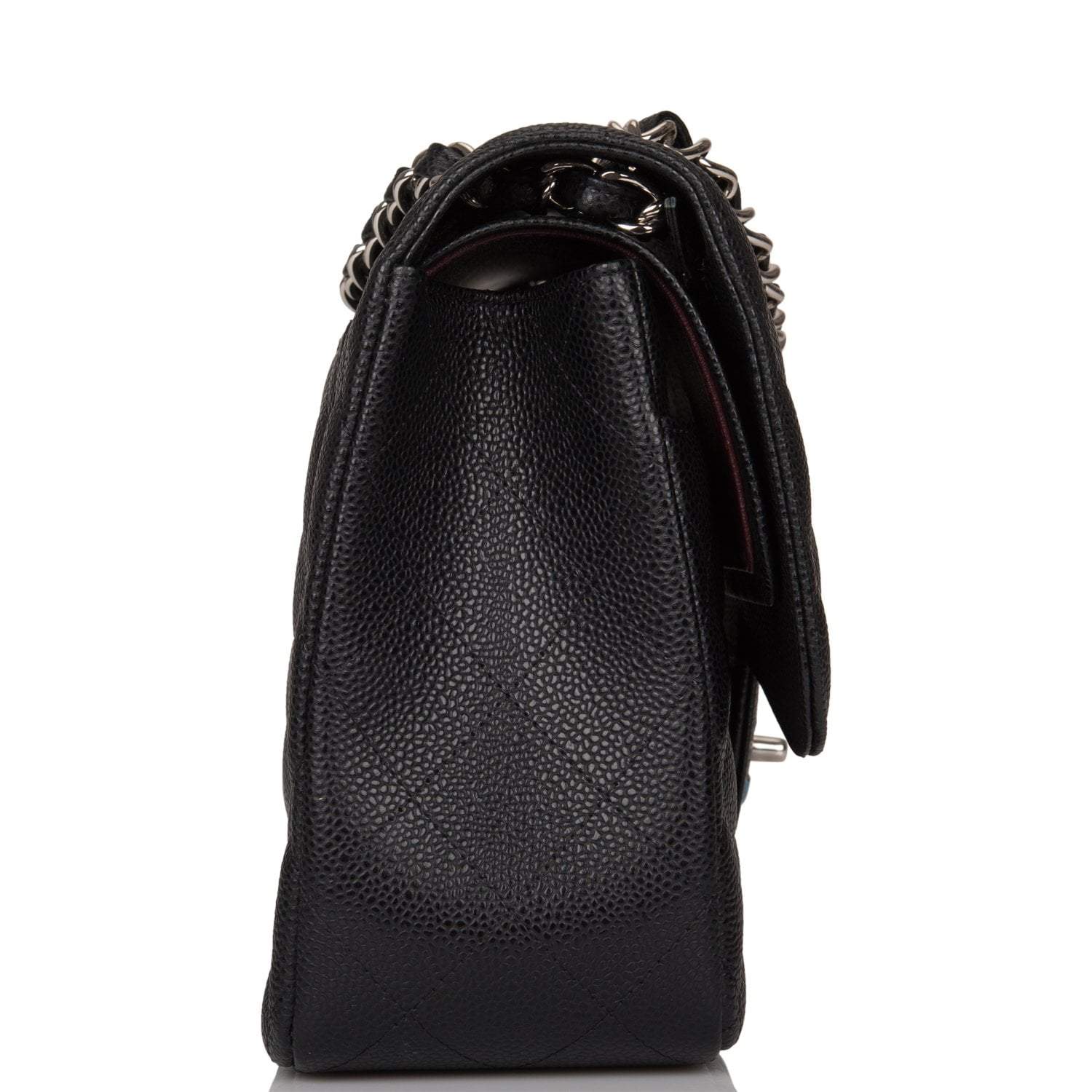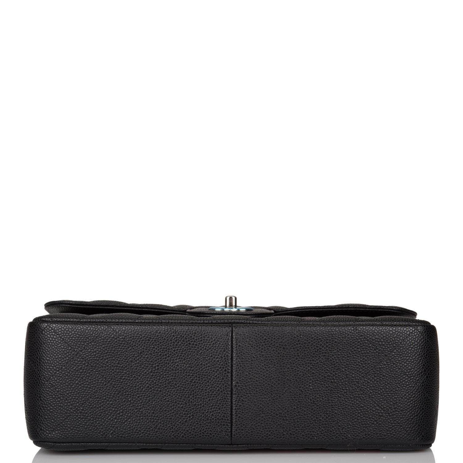 Chanel Black Quilted Caviar Jumbo Classic Double Flap Bag Silver Hardware