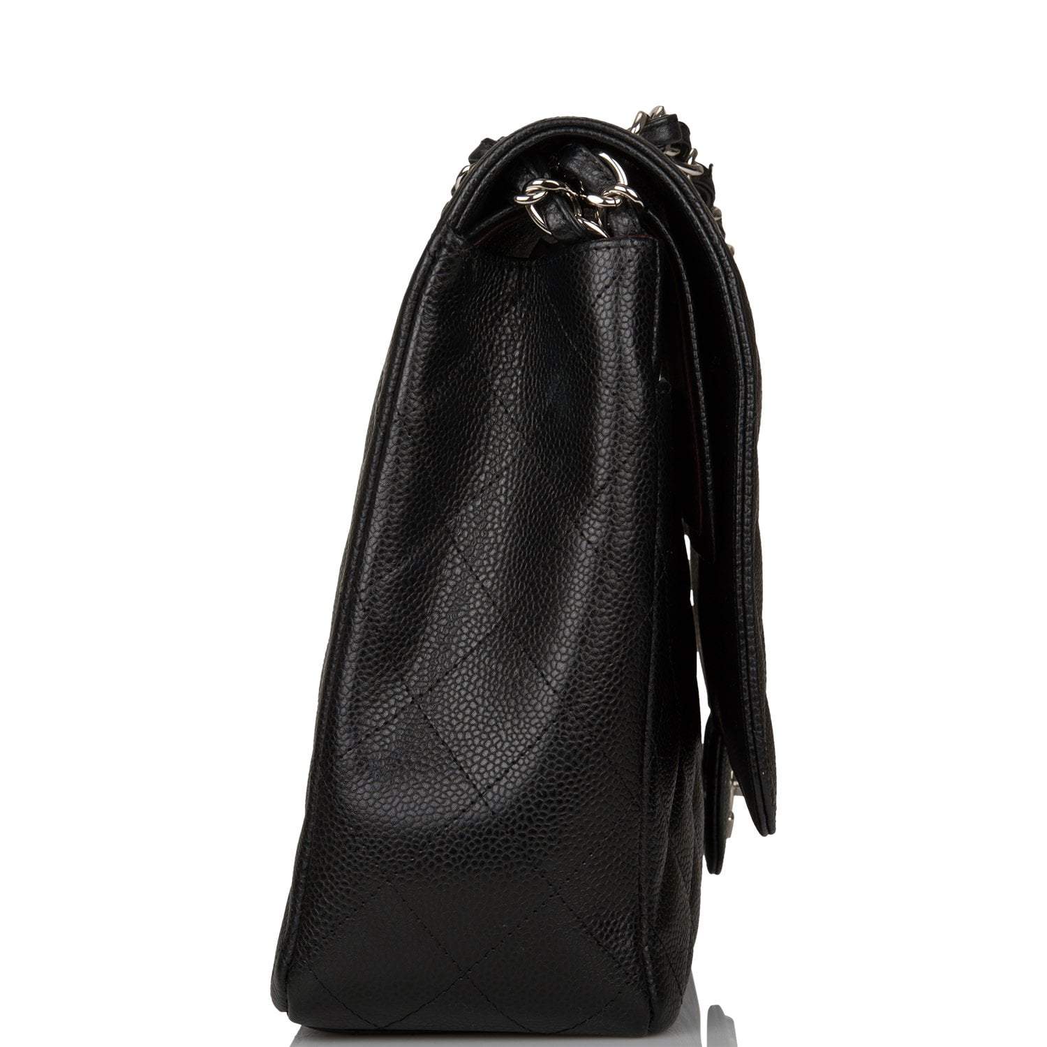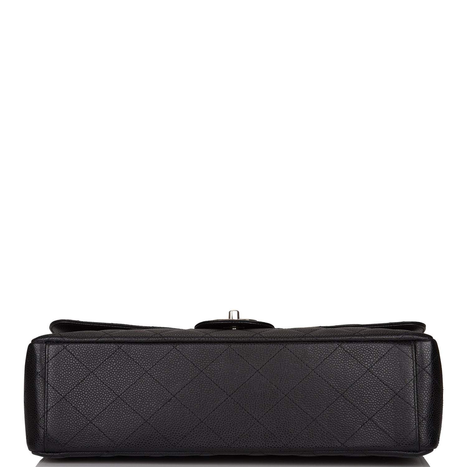 Chanel Black Quilted Caviar Maxi Classic Double Flap Bag Silver Hardware