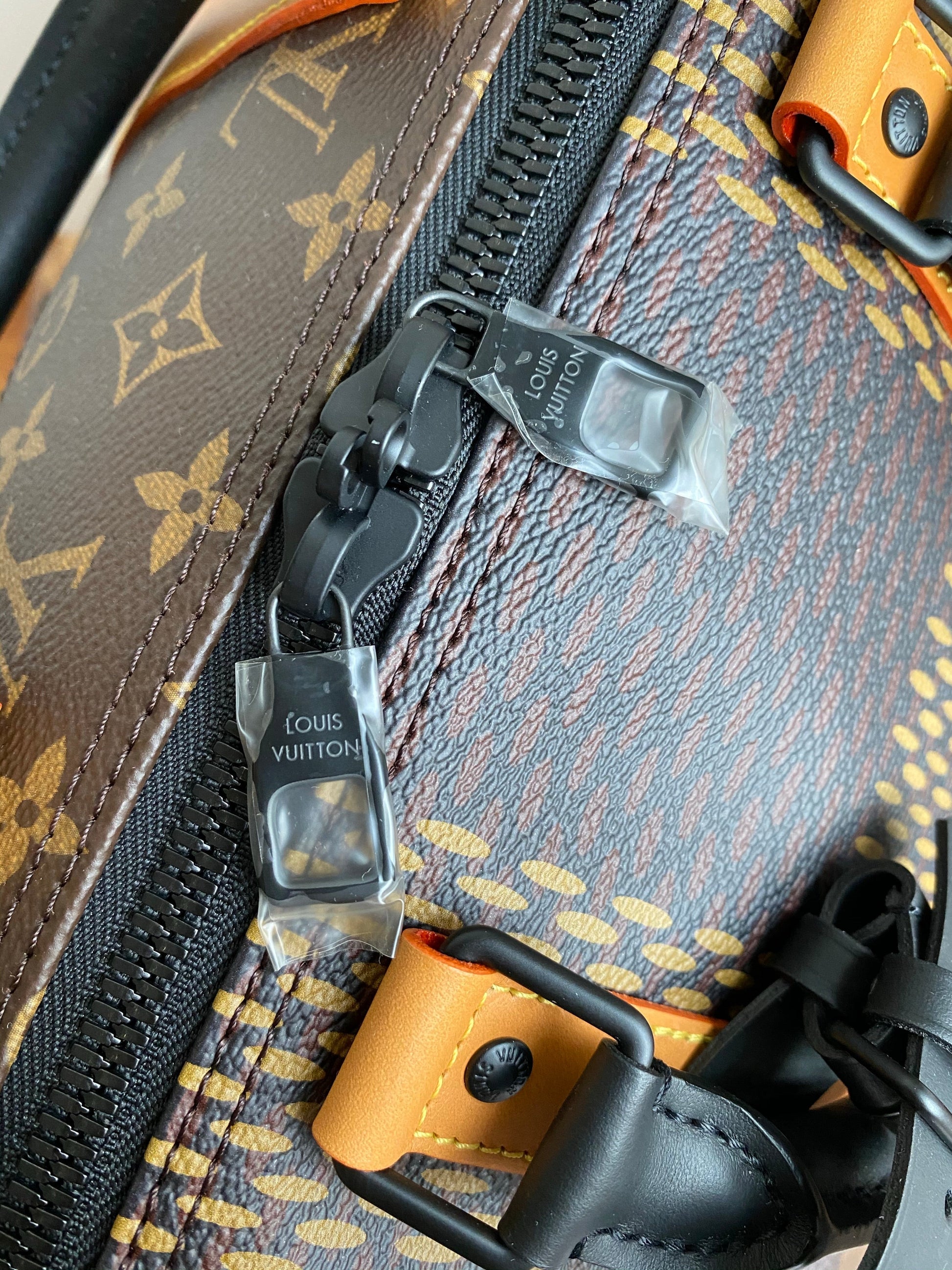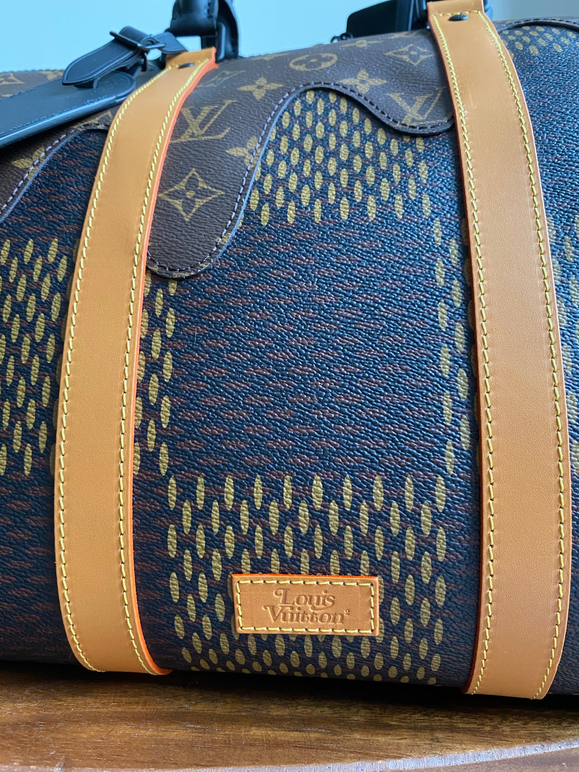- Material: Giant Damier Ebene and Monogram coated canvas, leather straps