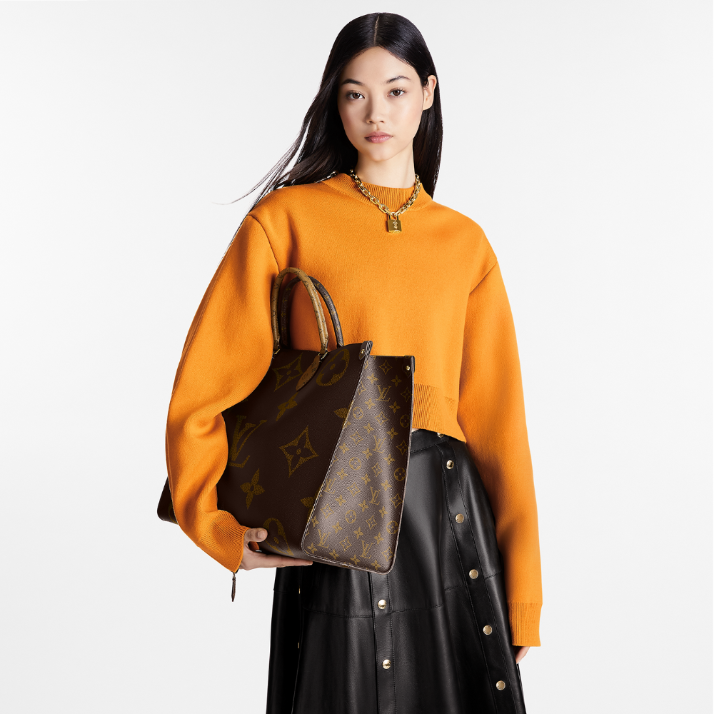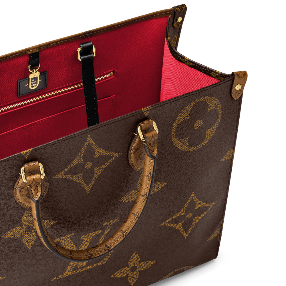 Fashioned from Monogram Giant canvas, the OnTheGo GM tote bag is as striking as it is practical. A Monogram Reverse pattern on the sides and handles creates a stylish contrast in color and scale. With its generous capacity, shoulder straps and iconic Toron top handles, this versatile GM model is an ideal bag for everyday wear.