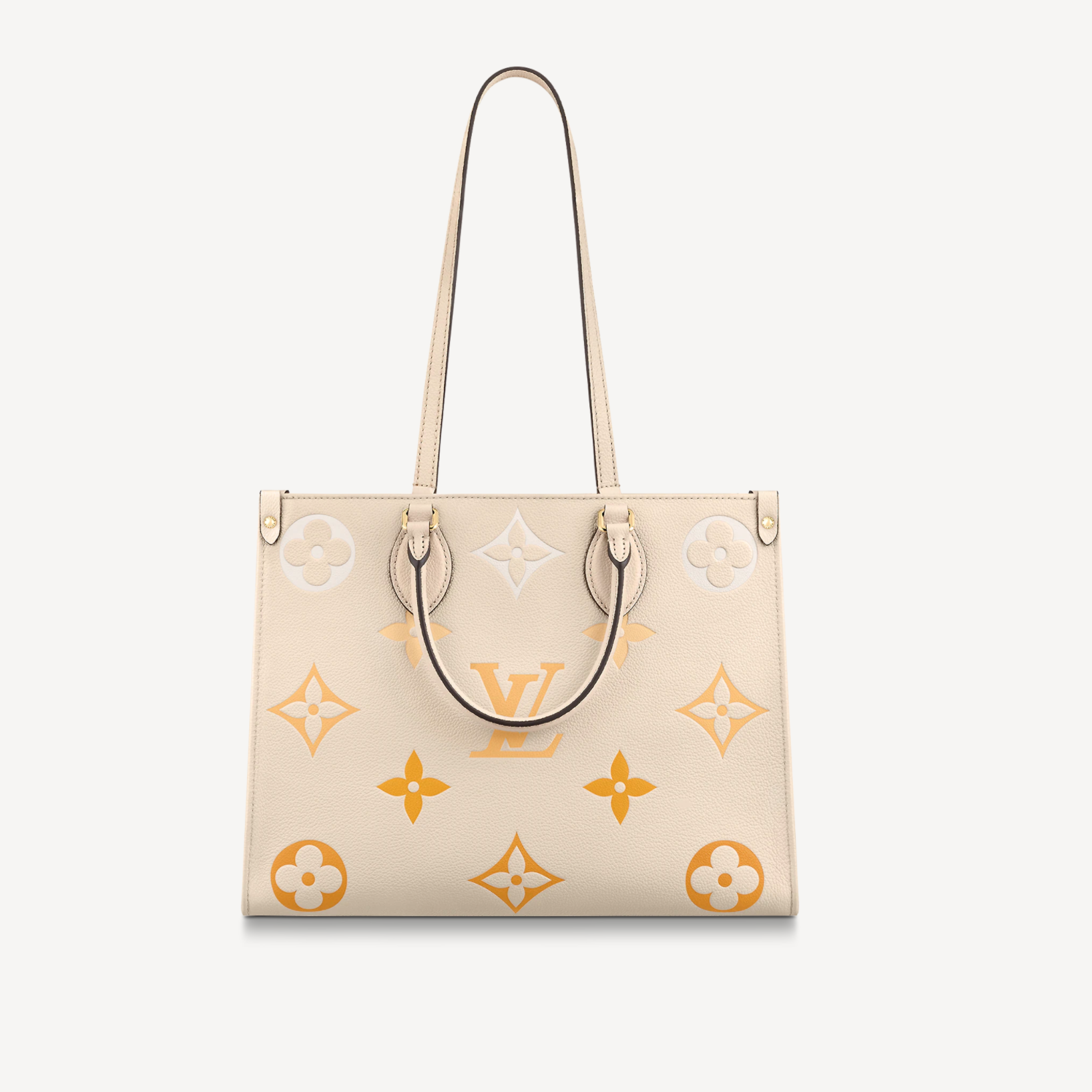 Made from a Monogram Empreinte leather with a subtle color gradient on the embossed Monogram pattern, the emblematic OnTheGo MM tote bag is part of the By The Pool capsule collection. It has two sets of handles, long and short, for hand and shoulder carry, and a spacious interior, which easily fits essentials such as a laptop. A leather charm gives a playful spirit and highlights the LV craftsmanship.