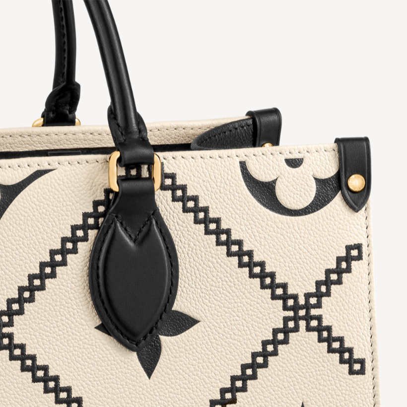 Characteristics: This Onthego MM carryall wears a graphic Monogram print this season, created especially for the Wild at Heart capsule. Inspired by an archival design, the pattern makes a striking fashion statement on this roomy tote, a stylish companion for business, shopping or travel. Long shoulder straps and twin Toron top handles provide several comfortable carry options.