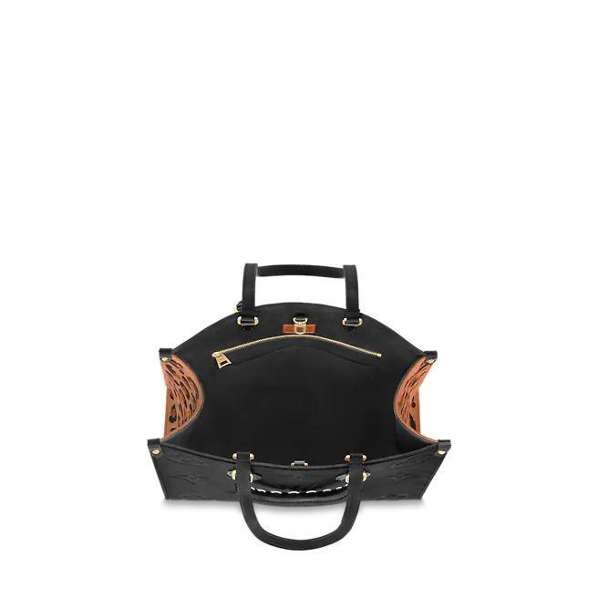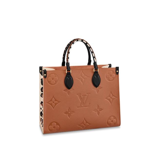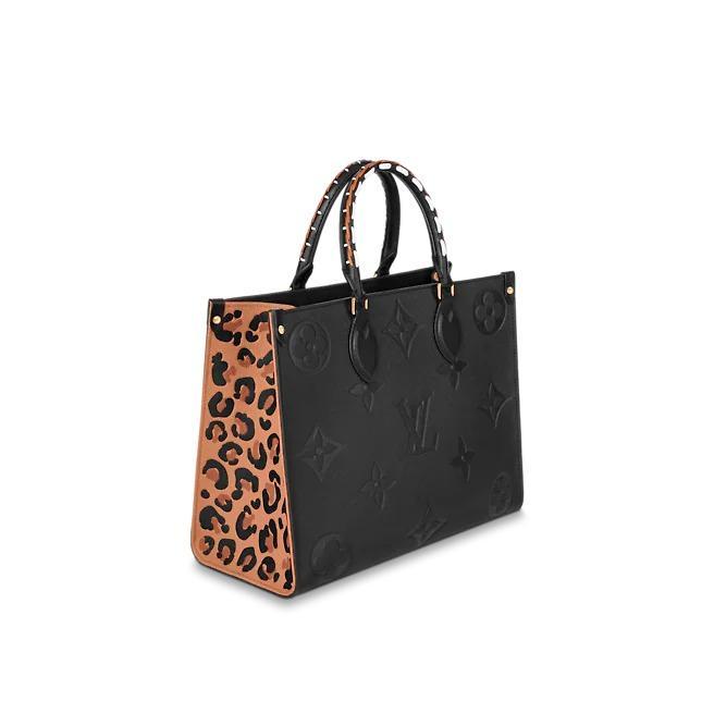 The Onthego MM tote comes from the Fall 2021 Wild at Heart capsule. Made from Monogram Empreinte embossed leather, it features a glossy Monogram motif and leopard-print sides. Fitted with braided top handles as well as longer leather straps, the bag adapts to a variety of carry styles. True to its name, it easily holds a woman’s daily essentials.