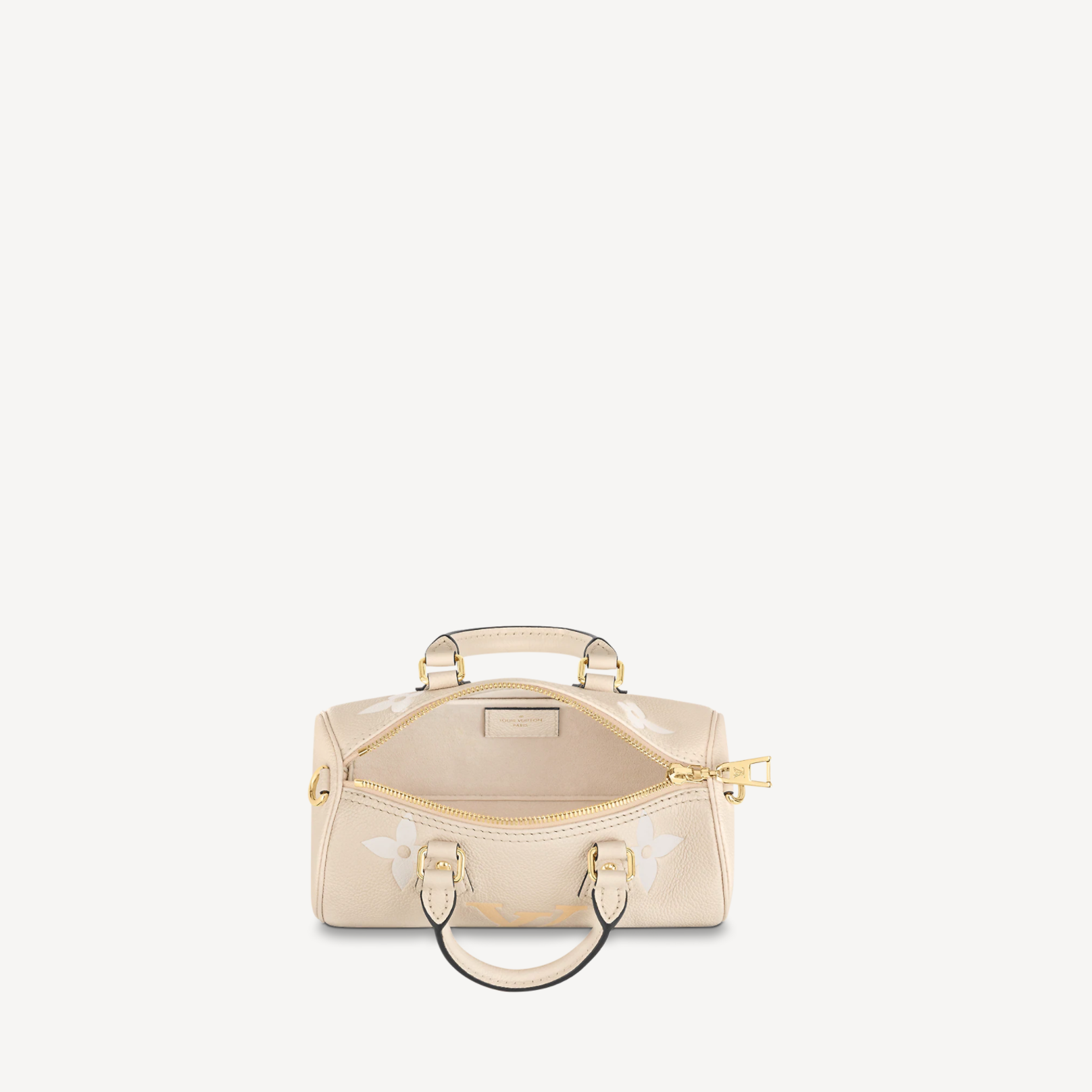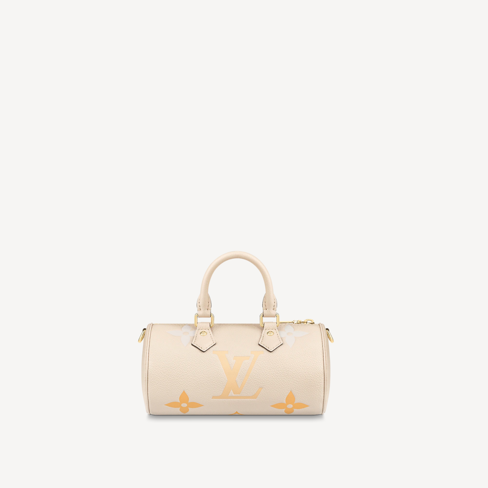 Characteristics: This adorable version of the historic Papillon shape, the Papillon BB carryall bag, is made from pastel Monogram Empreinte leather with a gradient Monogram print. Its iconic lines get a sporty update thanks to its detachable Louis Vuitton jacquard strap. The removable round coin purse brings a playful touch.