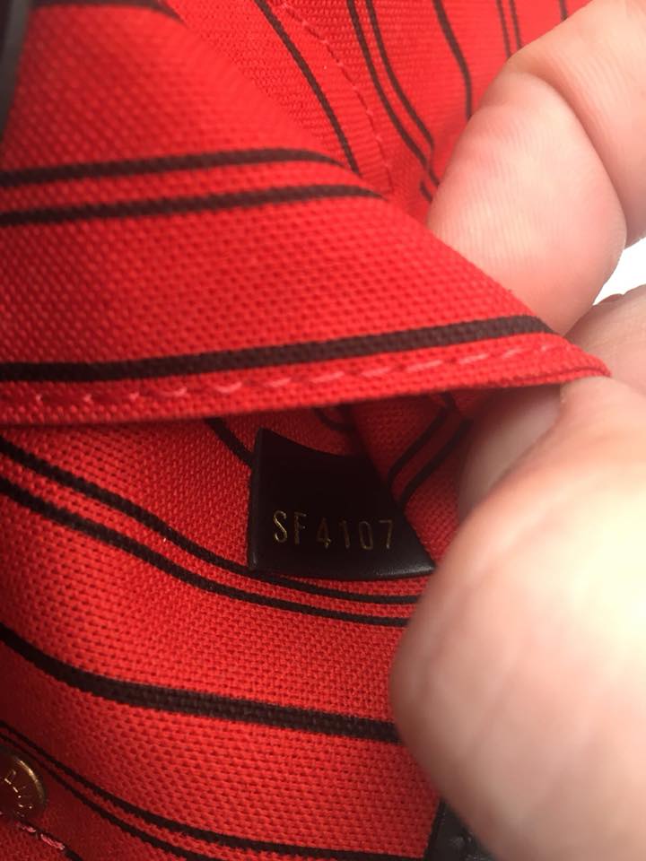 Characteristics: This stunning neverfull style bag is crafted of monogram canvas. The shoulder bag features a playful look of classic travel stickers, black leather trim, polished gold hardware and black leather top handles. The wide top is open to a red striped fabric interior with a hanging zipper pocket. It comes with a matching removable zippered clutch.