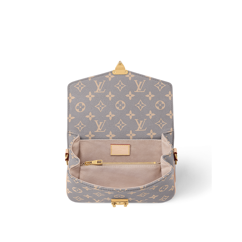 The elegant Parisian color palette of the Pochette Métis East West is designed to complement the RTW Fall-Winter 2024 collection. This smooth combination of shades is inspired by the House's historic trunks and depicted on signature Monogram-coated canvas trimmed with smooth, natural cowhide leather. The gold-toned S-lock closure adds to its sophisticated appeal.