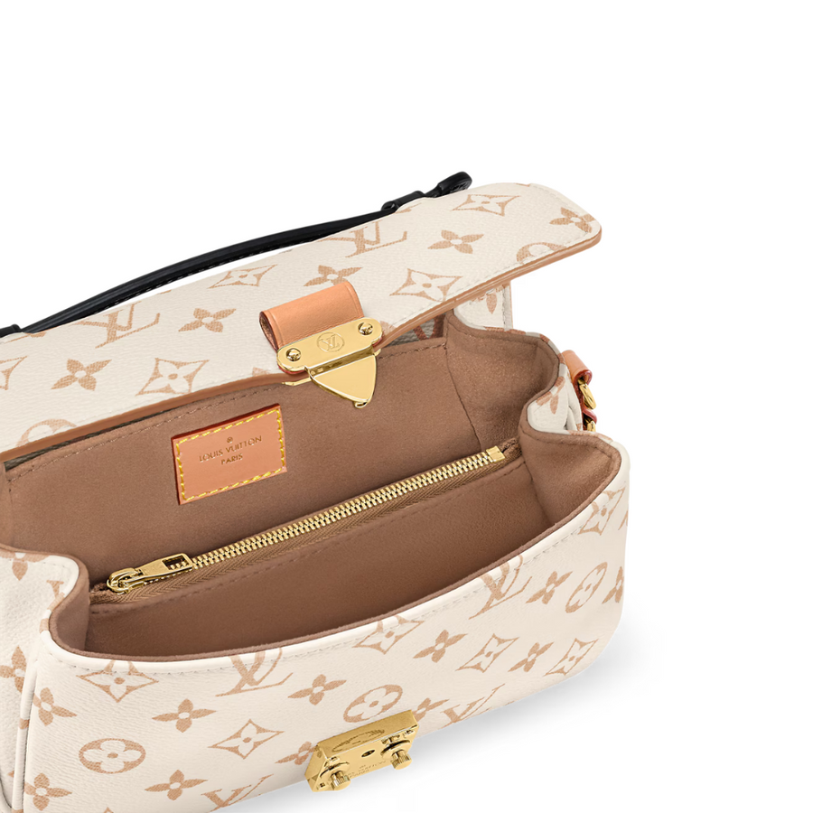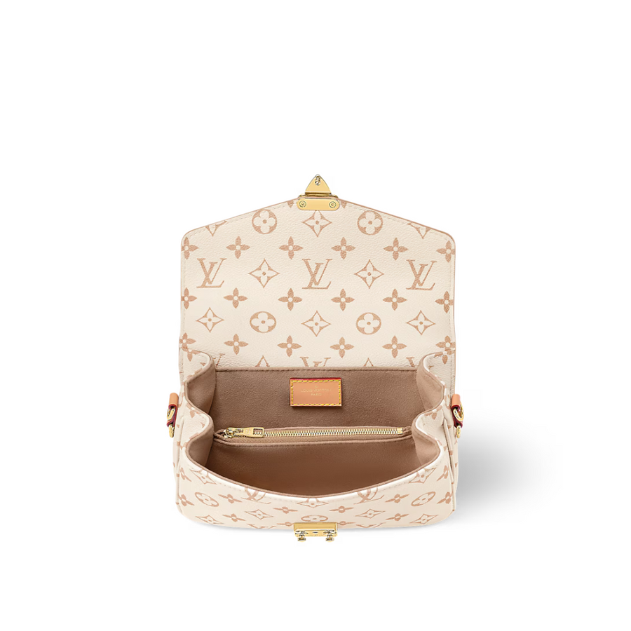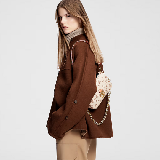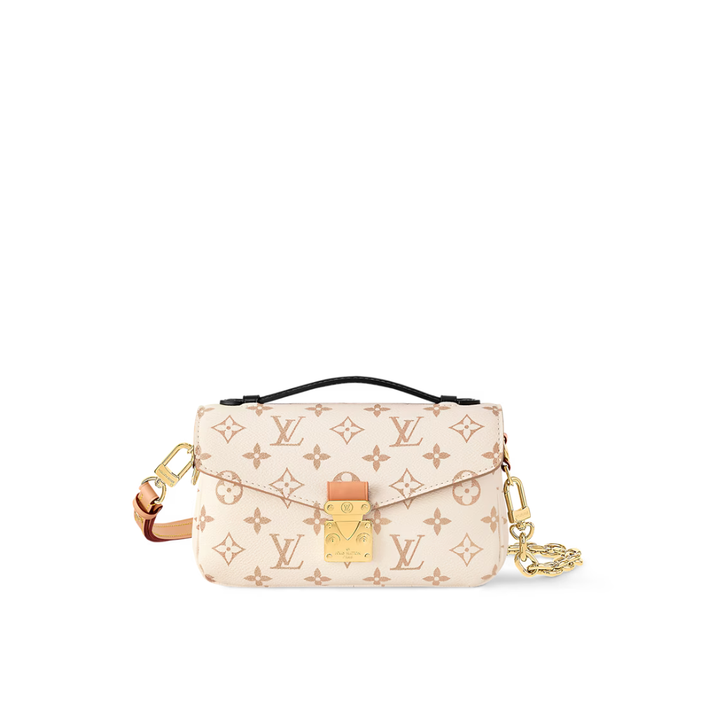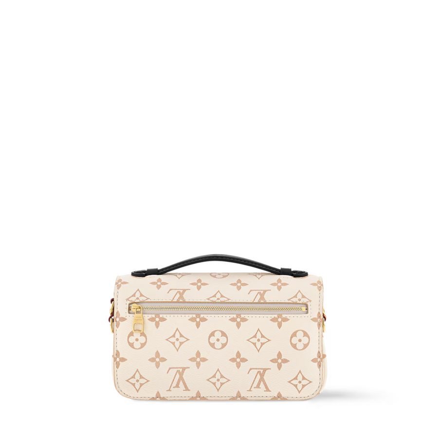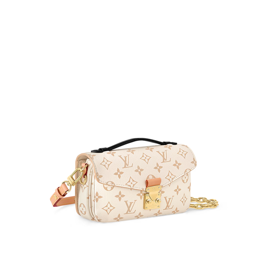 Fresh from Cruise 24, the versatile Pochette Métis East-West handbag showcases a new signature canvas: Monogram Dune. A soft yet strong colorway, the sand-inspired shade brings an air of effortless chic to any ensemble. This east-west model can be styled in a variety of ways, thanks to a leather top handle, detachable chain, and removable leather strap.