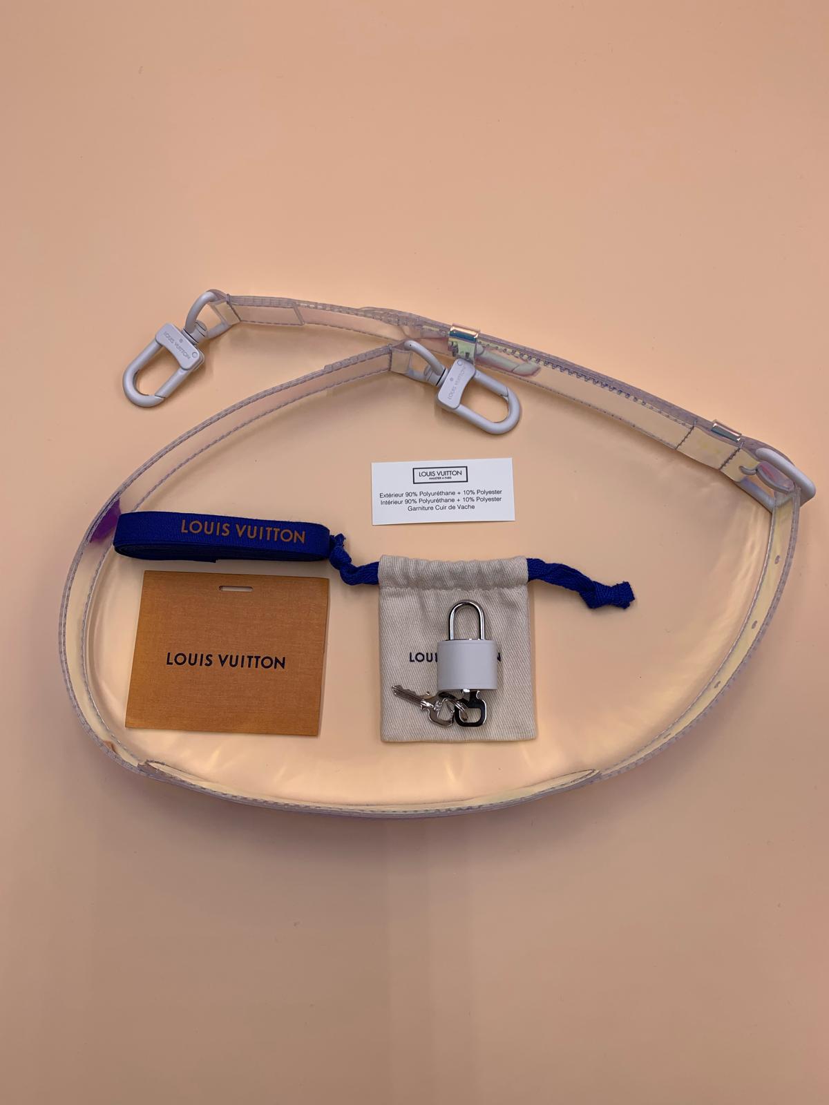 - Material: Transparent Embossed Monogram PVC, leather strap