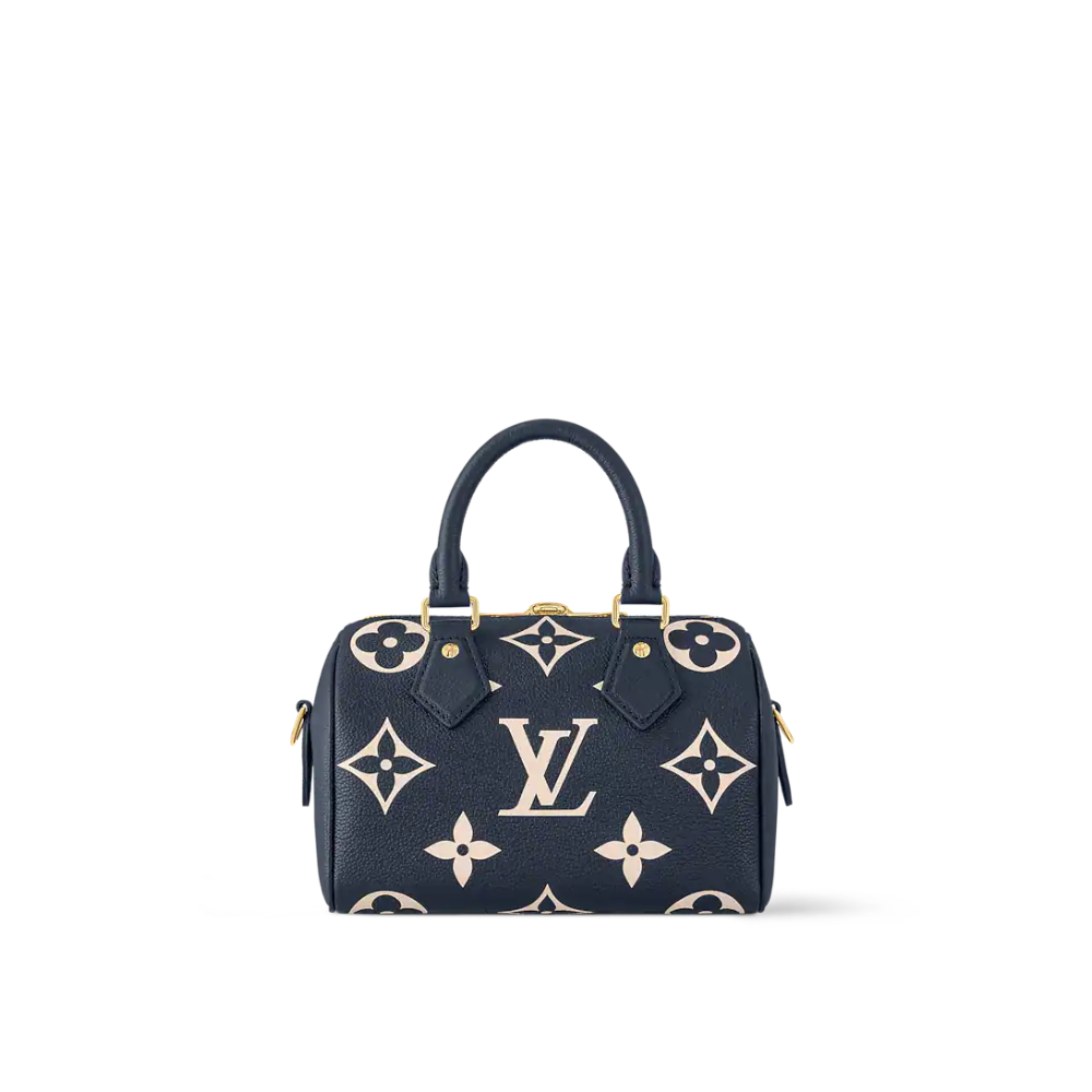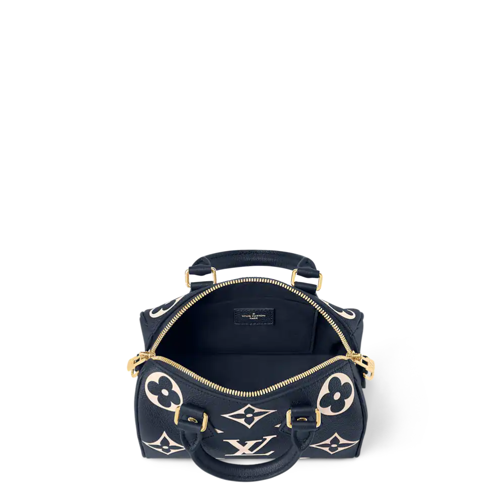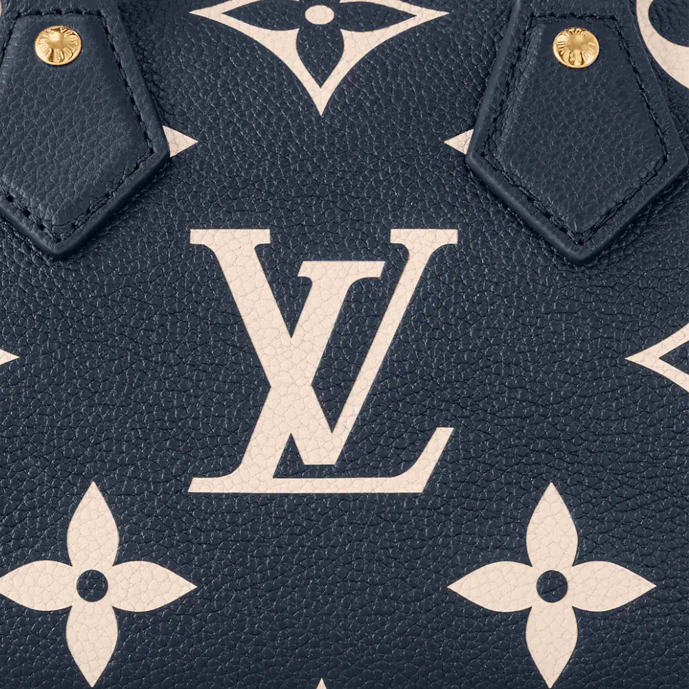 Two-color Monogram Empreinte cowhide leather brings a luxurious aspect to the Speedy Bandoulière 20. The Monogram is first embossed into the navy-blue leather, then the pattern is printed in cream on top of the embossing. Part of the Nautical Collection, the Speedy features two top handles and a removable and adjustable strap for shoulder carry.