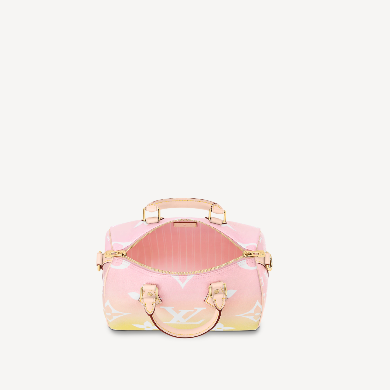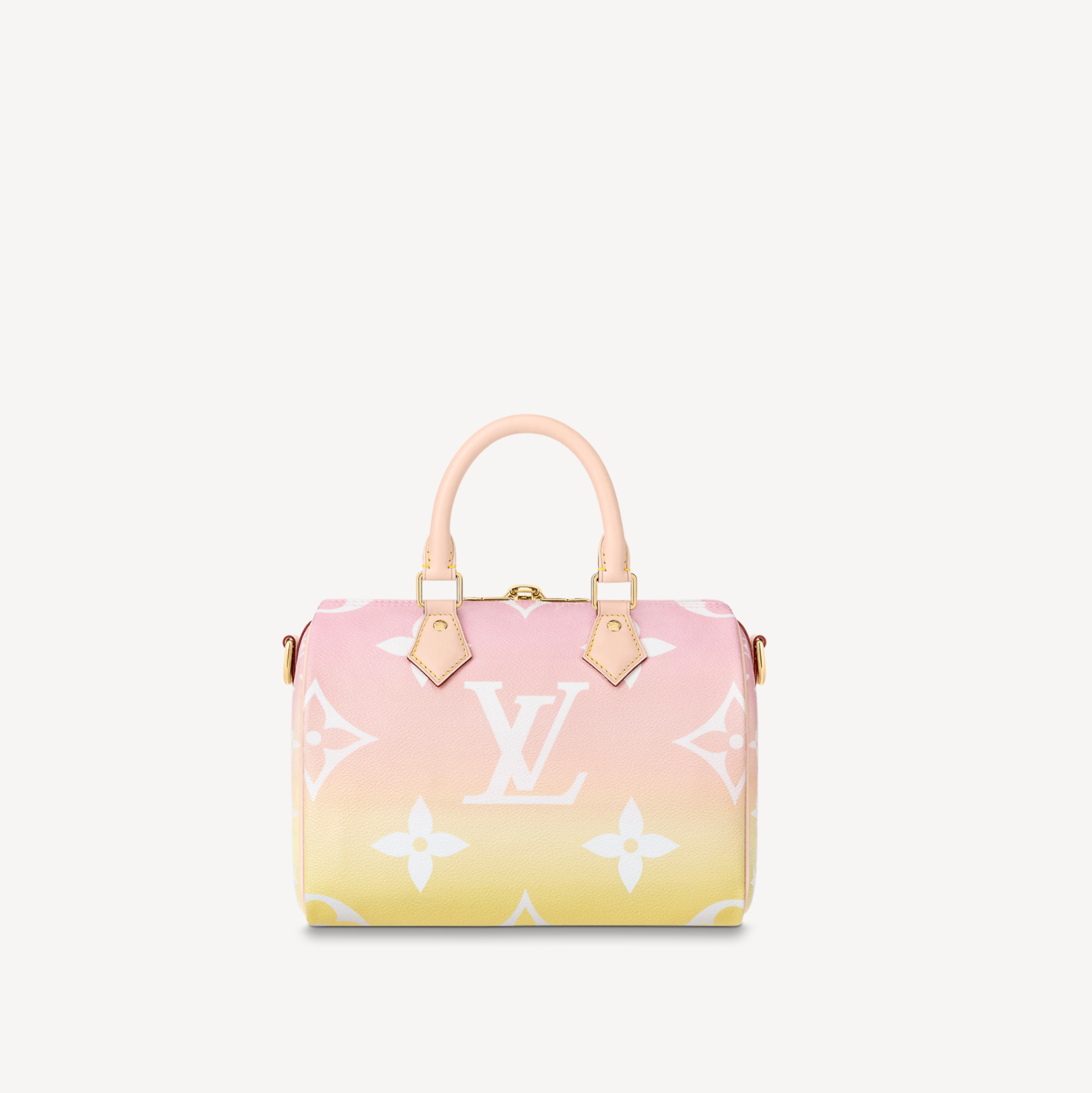 Characteristics: Fashioned from gradient pastel Monogram Giant canvas, the compact Speedy 25 is an elegant handbag, ideal for urban life. Introduced in 1930 as the "Express" and inspired by that era's increasingly swift transportation options, today’s updated Speedy is accessorized with a leather flower charm.