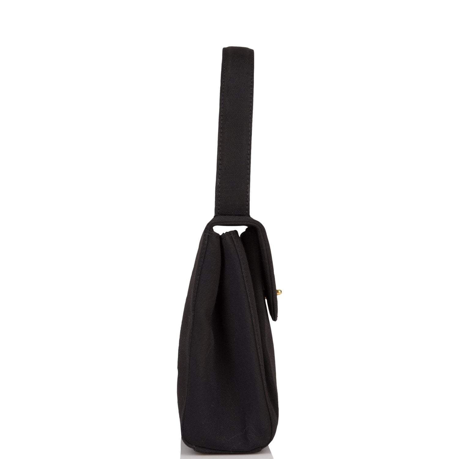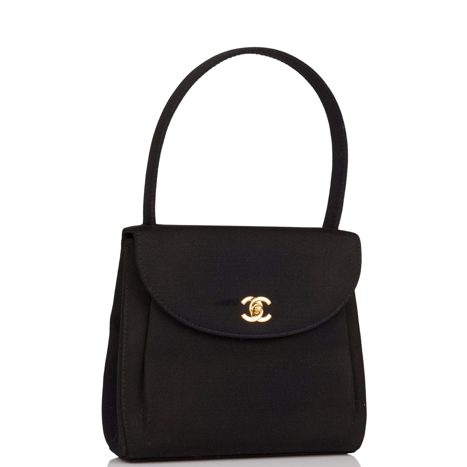 Vintage Chanel Mini Kelly Bag Black Satin Gold Hardware